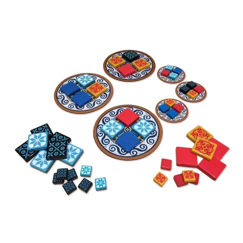 | Azul invites you, a tile laying artist, to embellish the walls of the Royal Palace of Evora! Introduced by the Moors, “azulejos”, originally white and blue ceramic tiles, were fully embraced by the Portuguese, when their king Manuel I, on a visit to the Alhambra palace in Southern Spain, was mesmerized by the beauty of the decorative tiles. The king then immediately ordered that his own palace in Portugal be decorated with similar wall tiles. Box Contains: 100 Resin Tiles 4 Player Boards 9 Factory Displays 4 Scoring Markers 1 Starting Player Marker 1 Linen Bag 1 English Rulebook 1 Arabic Rulebook 1 French Rulebook Info Language: English, Arabic and French Age: 8+ No Players: 2 - 4 Game Time: 30 - 45 min |