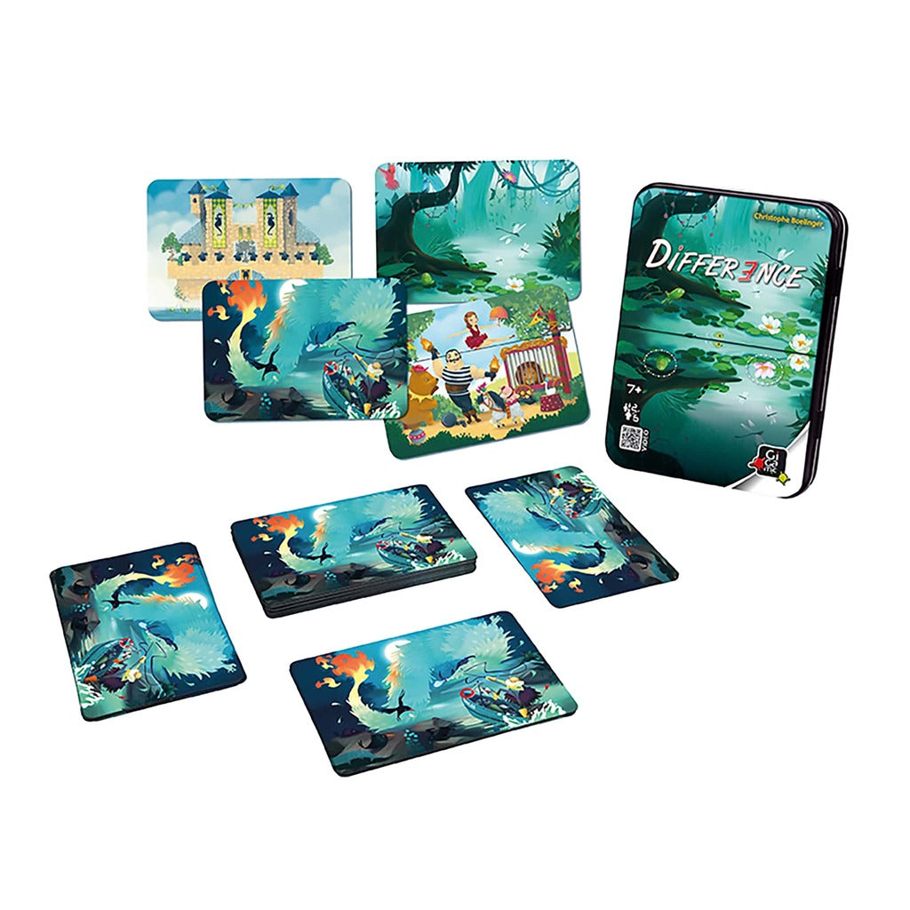 Can you spot the Differences! Place one card in the middle of the table and then deal the rest out to players evenly. Each player looks at the top card of their deck and tries to spot the two differences between their card and the one in the middle. When the player correctly spots the Difference, they place their card on top of the middle card and the game continues. The first player to be rid of all their cards wins! With 2 double-sided decks showing 4 different pictures, you will be hunting for hours! Box Contains: 50 Double sided-cards 1 Rulebook Info Language: English Age: 7+ No Players: 2 - 6 Game Time: 20 min |
