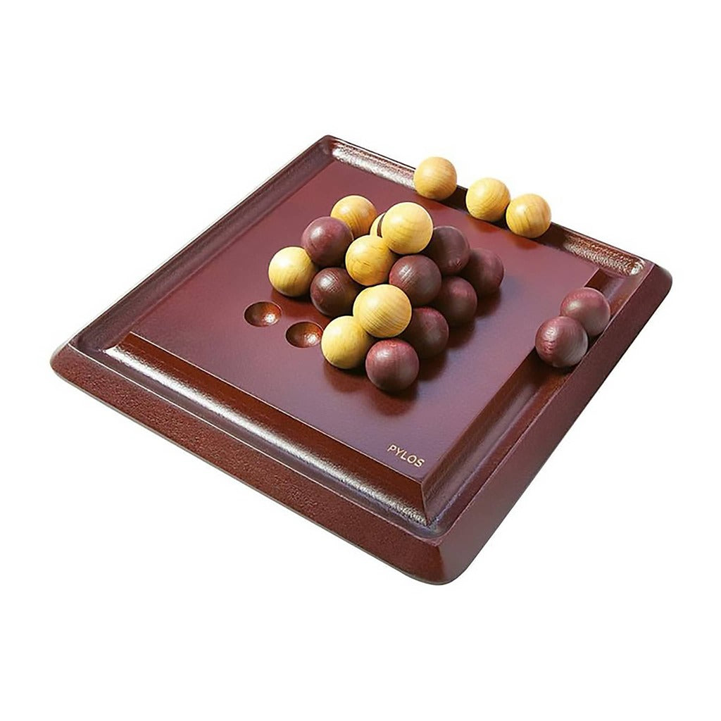 | Simple rules, quick rounds and rather subtle tactics: Pylos is one of the strangest yet most beautiful abstract games on the market today, and winner of several “Game of the Year” awards around the world. The object is to save your marbles so that you can be the one to place a marble at the very top of the pyramid. Pylos is irresistibly attractive as both a game and a decorative object. Box Contains: 1 Pyramid Board 30 Wooden Balls 1 Cloth Bag Rules Of The Game Language: English Age: 8+ No Players: 2 Game Time: 15 min |