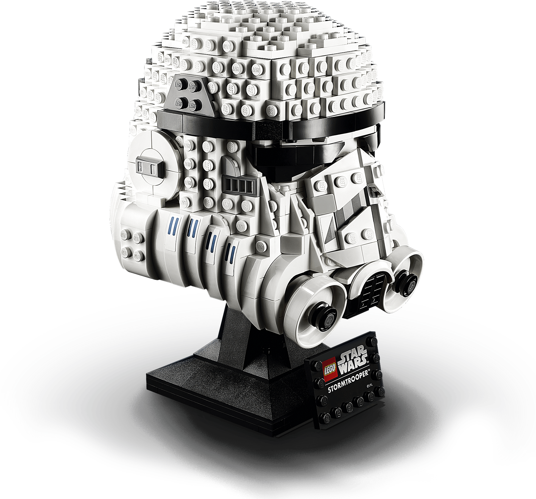 - The iconic shape and authentic details of a Stormtrooper’s helmet are recreated with LEGO® bricks plus graphics stickers. Display it on the base with nameplate, to evoke memories of epic Star Wars™ movie action.