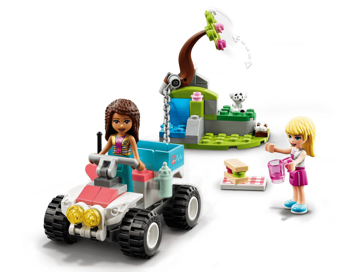 - This rescue toy includes 2 LEGO® Friends mini-doll characters, a new-for-January-2021 puppy figure, a cute buildable countryside picnic scene and a quad bike.